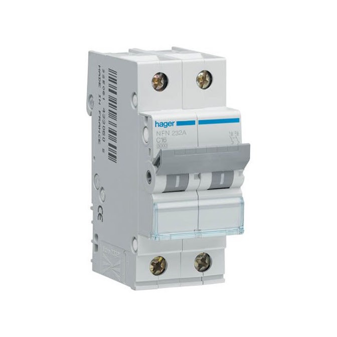 Breaker Modular 2P 16A, 6/10 kA Curva C HAGER